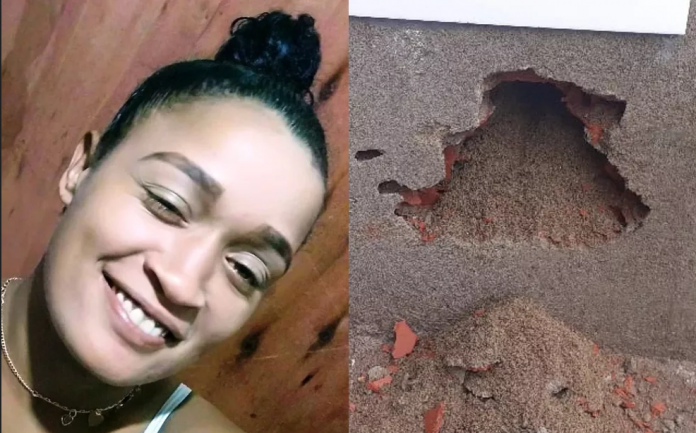 Ele acionou os policiais civis, que se dirigiram ao local e derrubaram parte da parede, constatando que o corpo estava dentro. Fotos obtidas pelo produtor Luiz Linna, da TV Tribuna, afiliada da Rede Globo, mostram o buraco feito no local onde a jovem foi encontrada. O corpo foi retirado com o auxílio do Corpo de Bombeiros.