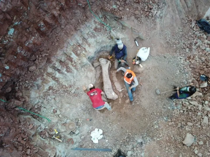 De acordo com a Folha de S.Paulo, no local foi encontrado um fêmur de mais de 1,5 metro de comprimento, além de outros ossos longos — como uma possível tíbia, pés, mãos, costelas e vértebras do animal, cuja espécie ainda é desconhecida pelos cientistas.