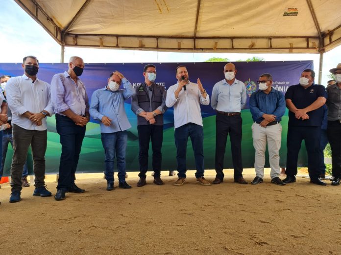 O deputado foi recebido pelo prefeito Pedro Fernandes (DEM) e pelos vereadores Gilvan Barata (MDB), Alecio Pretinho (PDT) e Jean Vinícius (DEM), entre outras lideranças. O governador Marcos Rocha e o diretor geral do DER, Elias Rezende, também participaram da solenidade.