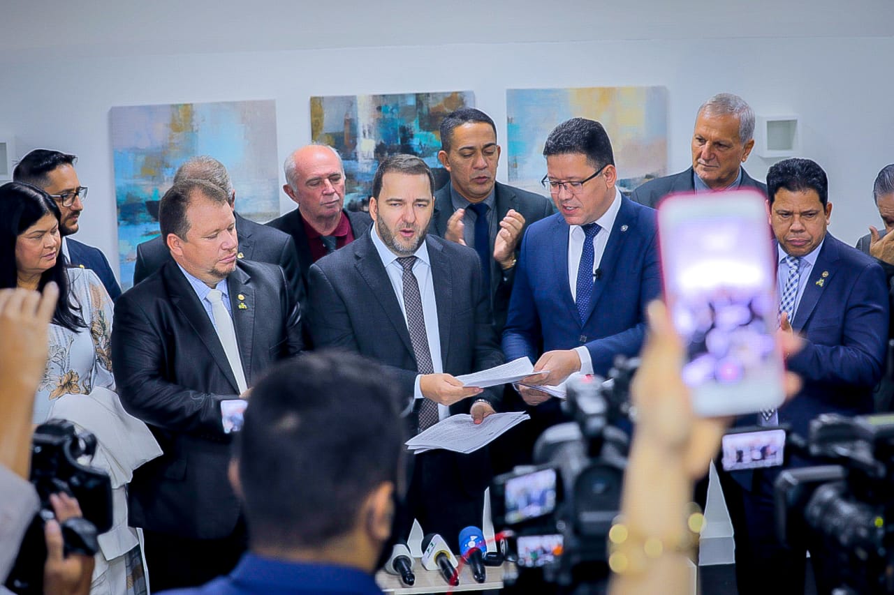 Durante coletiva na manhã desta quarta-feira (15), no Salão Nobre, o presidente da Assembleia Legislativa, Alex Redano (Republicanos), destacou que é um momento histórico, após receber das mãos do governador Marcos Rocha os projetos de leis que garantem o Plano de Cargo, Carreira e Salários (PCCS) de diversas categorias de servidores do Estado, além do pagamento do abono do Fundeb aos servidores da Educação.