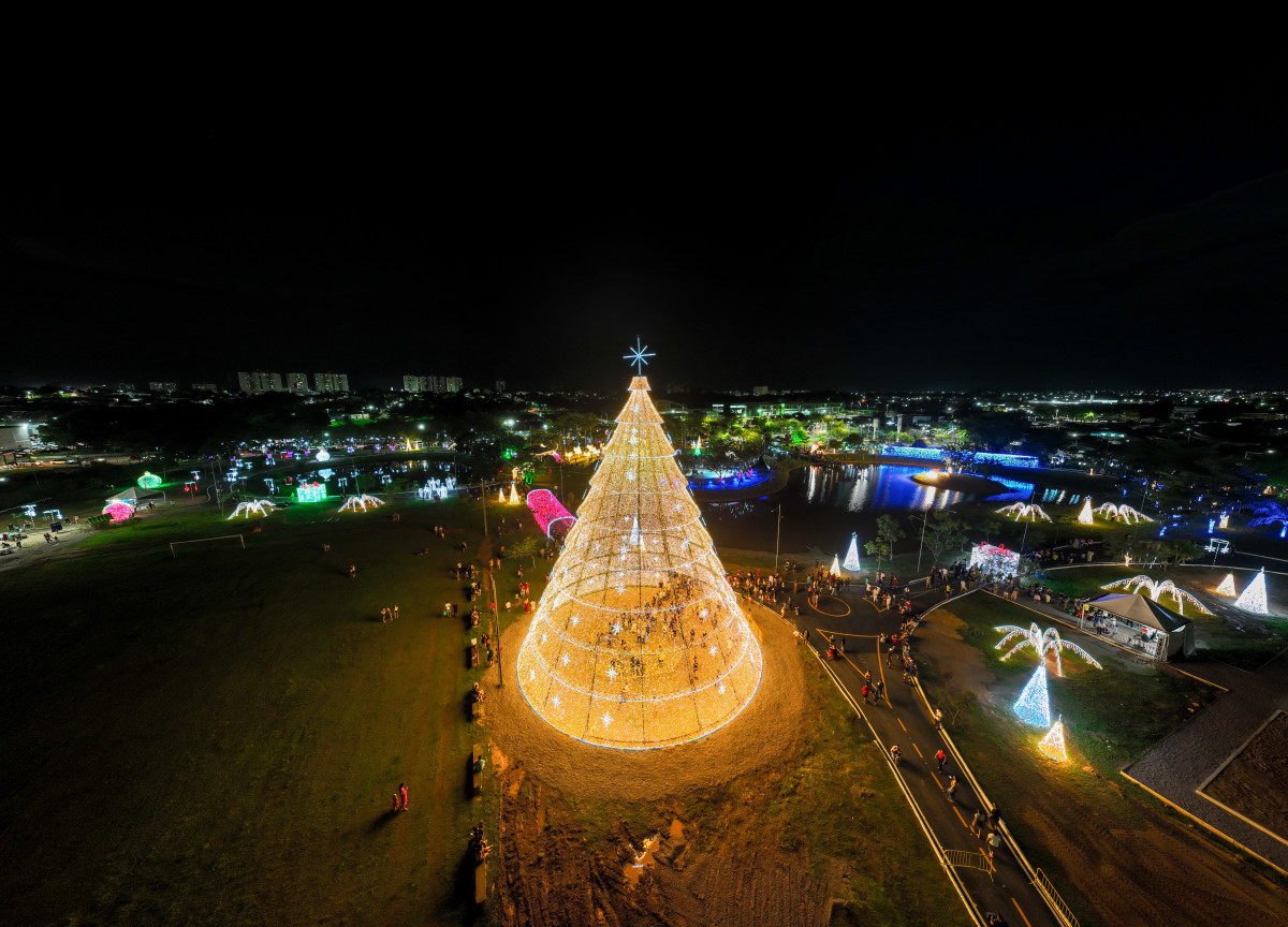 Decoração do Parque da Cidade inclui corredores de led, ornamentos natalinos e árvore de 35 metros de altura