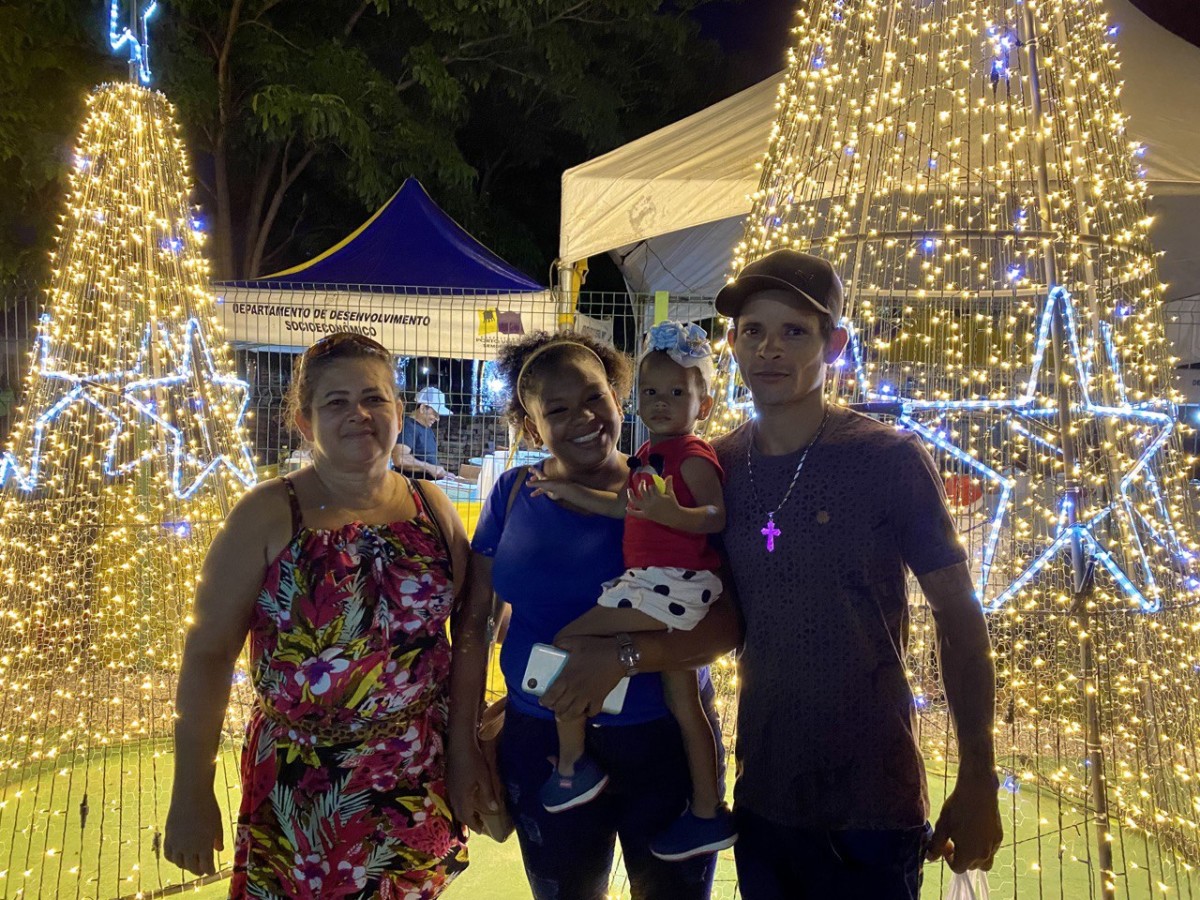 “Ficamos impactados quando vimos a decoração, de longe dá para ver a árvore brilhando. Está muito lindo. Aproveitamos para tirar umas fotos da família e comer as comidas regionais das barraquinhas do Giro Empreendedor”, contou.