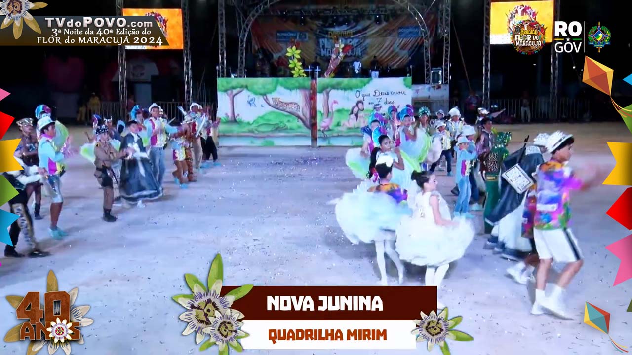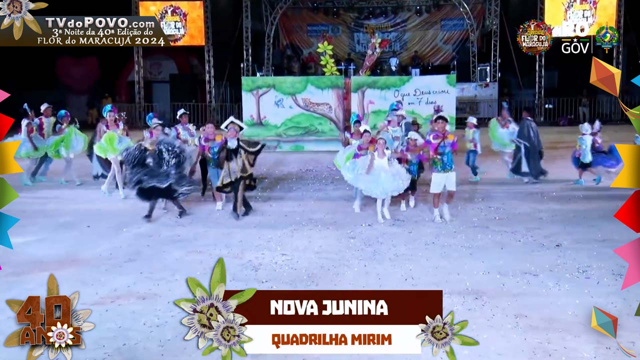 Fotos e Vídeo Completo: Apresentação da Quadrilha Mirim “NOVA JUNINA” na 3ª Noite do Flor do Maracujá 2024
