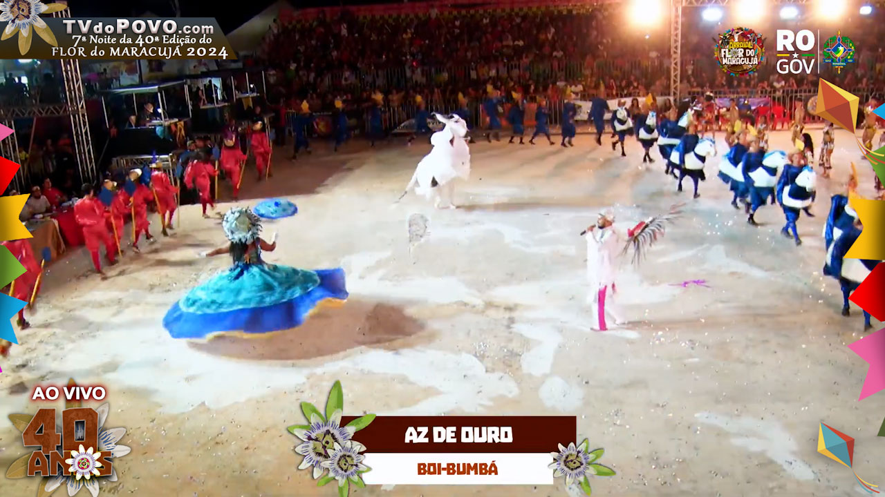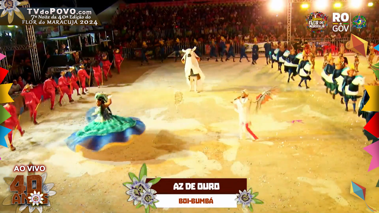 Fotos e Vídeo Completo: Apresentação da “Boi Bumbá Adulto AZ de OURO” na 7ª Noite do Flor do Maracujá 2024