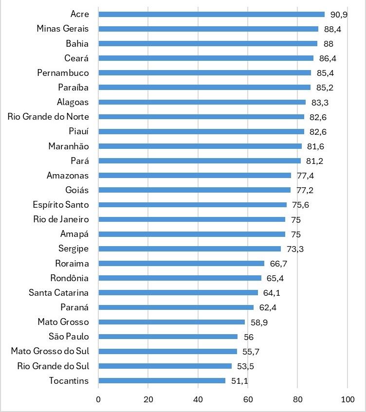 A região Nordeste lidera o ranking de inscrições com 84,4% dos municípios participantes. Logo após estão o Sudeste (74,5%), o Norte (69,3%), o Centro-Oeste (67,9%) e Sul (59,1%). Apenas a secretaria estadual da Paraíba ainda não aderiu à política.