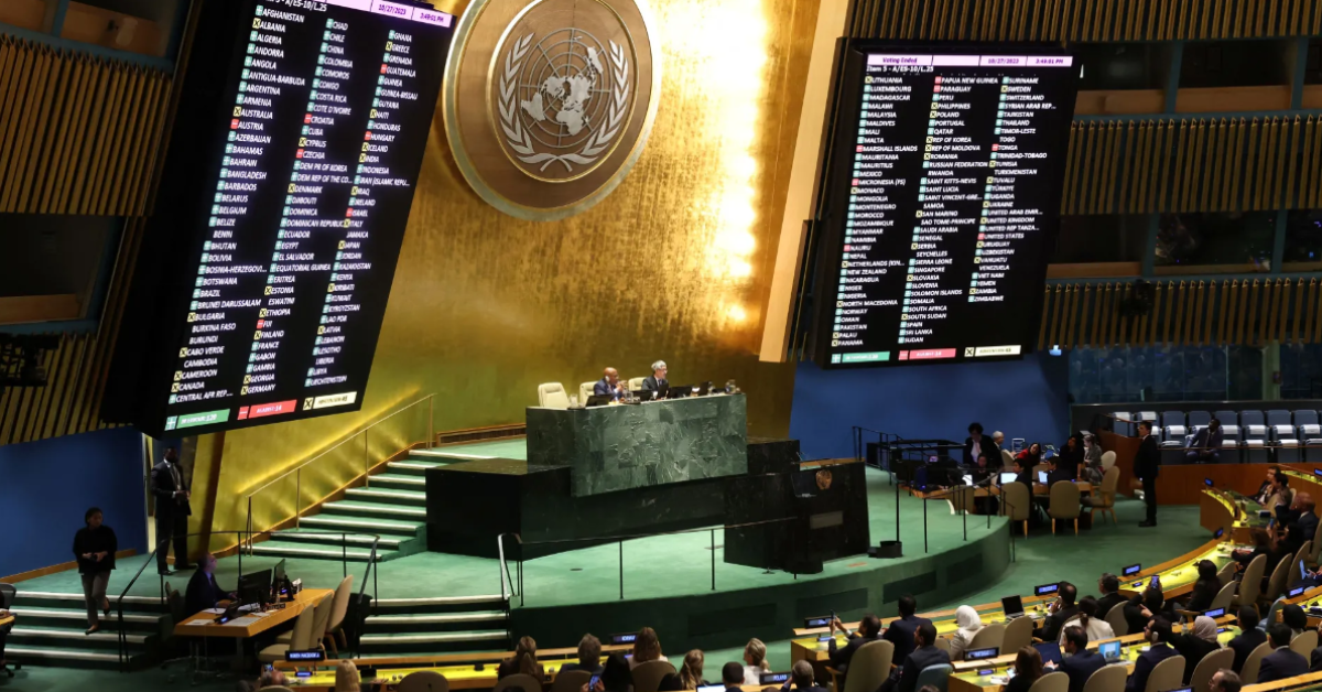 Em 27 de outubro do ano passado, a Assembleia-Geral pediu uma trégua humanitária imediata em Gaza com 120 votos a favor. Então, em dezembro, 153 países votaram para exigir, em vez de pedir, um cessar-fogo humanitário imediato.