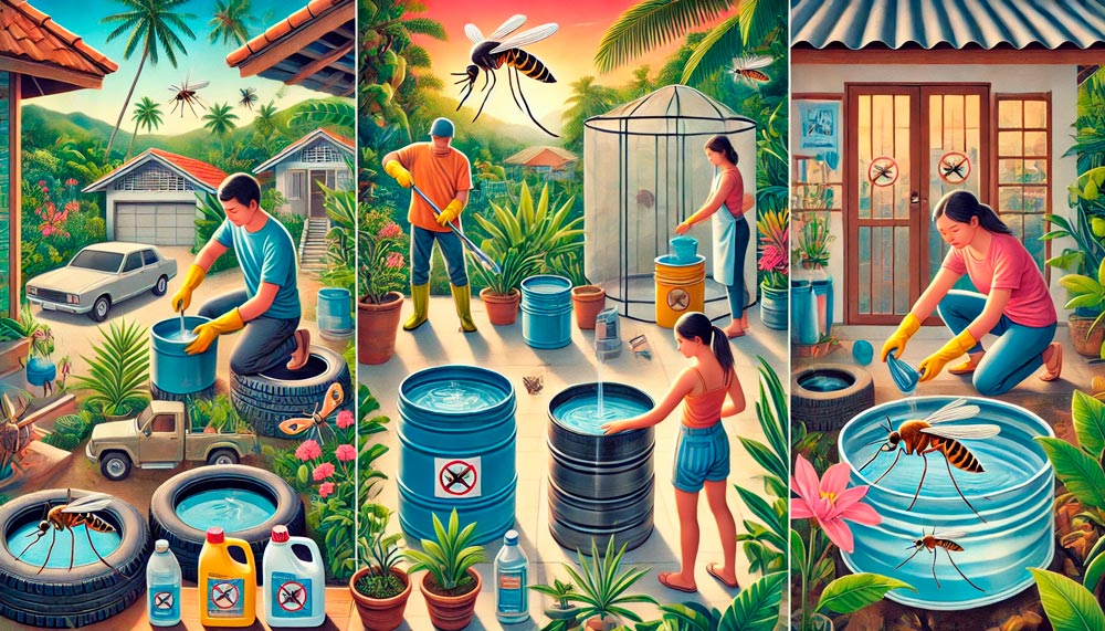 1. Eliminação de Água Parada: Locais como pneus, garrafas, vasos de plantas e qualquer recipiente que acumule água devem ser limpos ou descartados adequadamente.