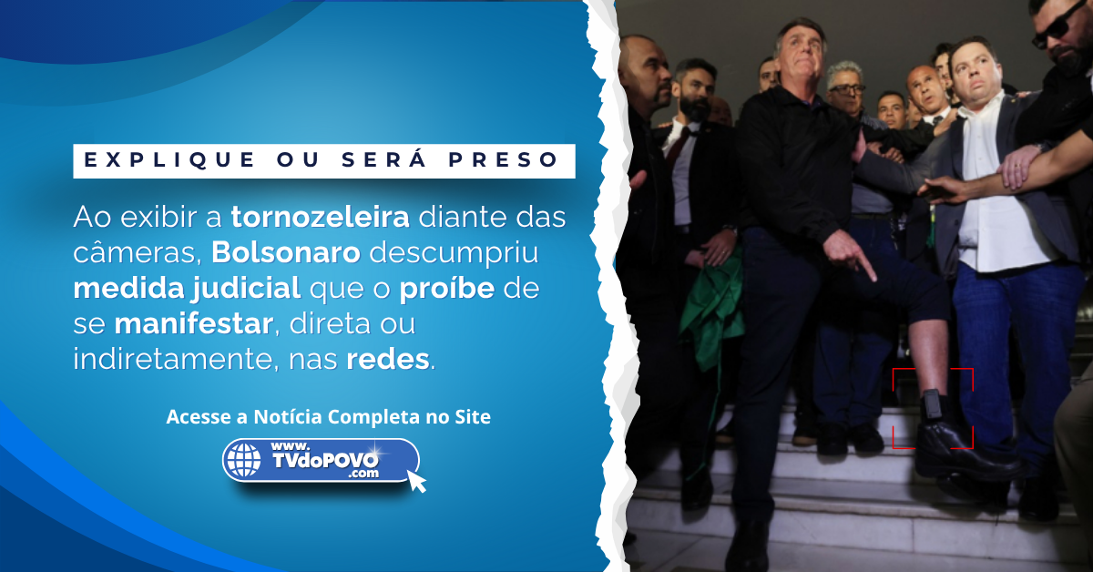 Alexandre de Moraes exige explicações da defesa de Bolsonaro após fala com tornozeleira circular nas redes. STF pode decretar prisão preventiva pelo descumprimento de medida cautelar.