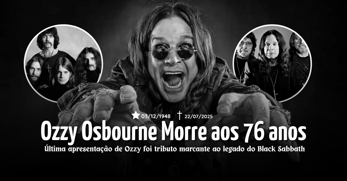 Morre Ozzy Osbourne aos 76 anos. Embora estivesse doente, seu último show em Birmingham reuniu lendas do rock em tributo ao vocalista do Black Sabbath.
