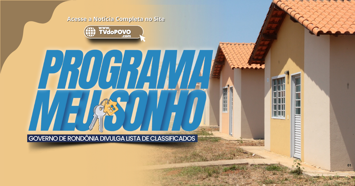 Capa do Programa Meu Sonho anuncia a liberação da lista de beneficiários em Rondônia para financiamento da casa própria.