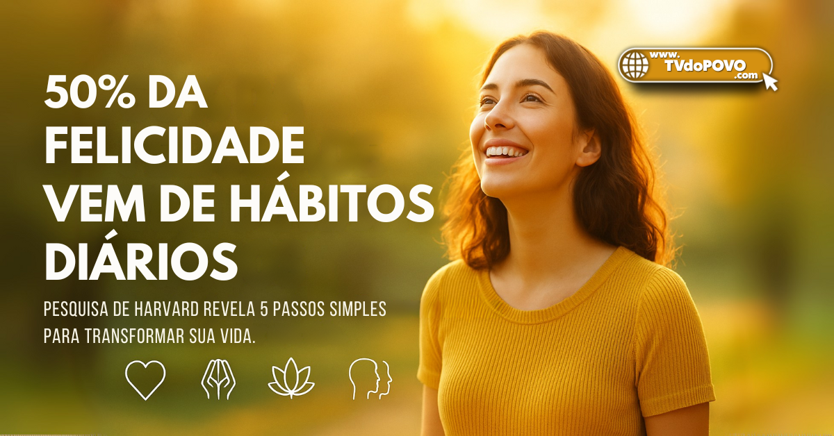 Pesquisa de Harvard comprova que metade da felicidade vem de hábitos diários simples. Veja os 5 passos que transformam a vida.
