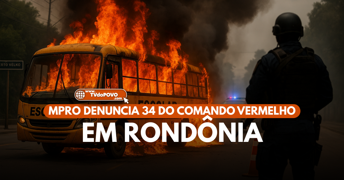 Ônibus escolar incendiado em operação onde o MPRO denuncia 34 do Comando Vermelho em Rondônia