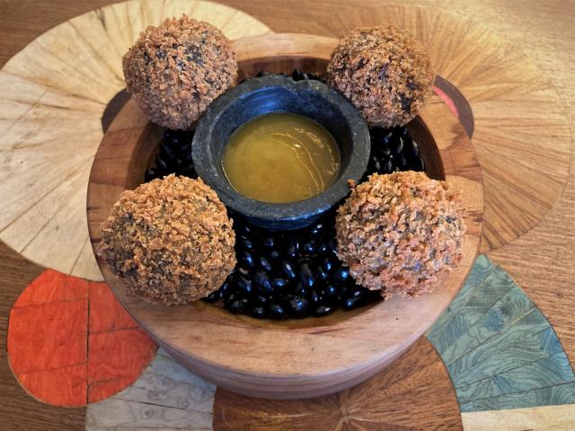 Foto ilustrativa do bolinho Siriju, feito com vegetais e fibra de caju, com sabor semelhante ao bolinho de siri.