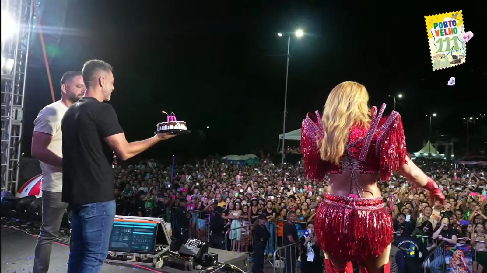 Imagem mostra a cantora Joelma e uma multidão na avenida Farquar durante a festa de 111 anos de Porto Velho, promovida pela Prefeitura