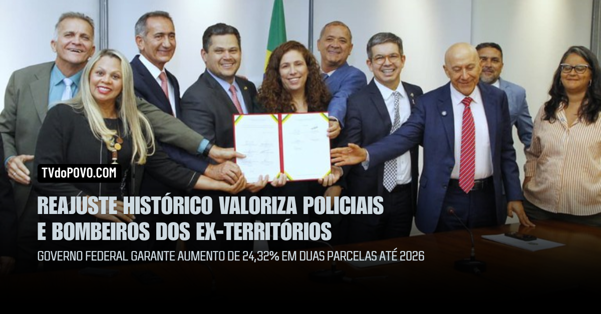 O governo federal assinou nesta quinta-feira (9) um termo de acordo que assegura reajuste salarial de 24,32% aos policiais militares e bombeiros dos ex-territórios federais do Amapá, Roraima e Rondônia. O aumento será pago em duas parcelas, sendo a primeira em dezembro de 2025 e a segunda em janeiro de 2026.