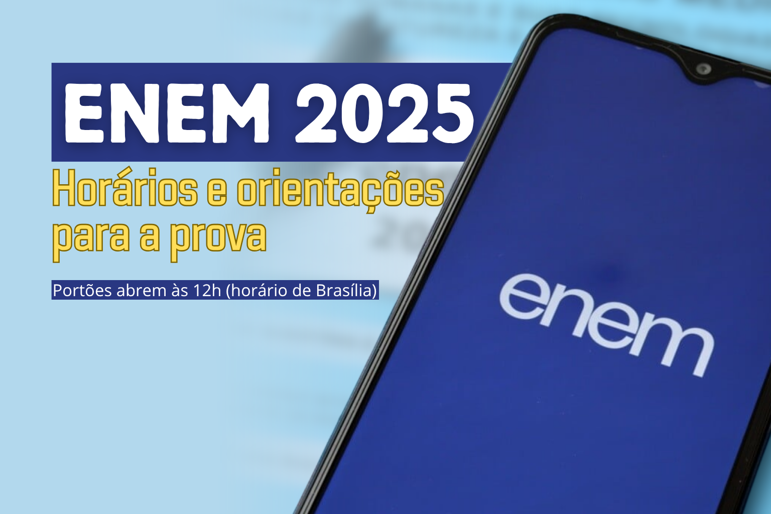 Candidatos devem ficar atentos ao horário do Enem 2025. Portões abrem às 12h e fecham às 13h, conforme o horário de Brasília.