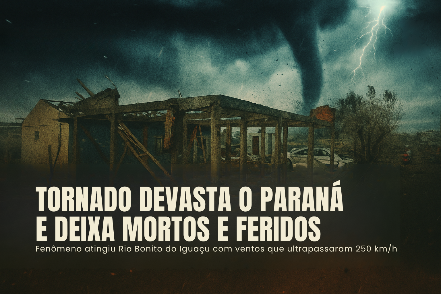 Um tornado de alta intensidade atingiu nesta sexta-feira (7) o município de Rio Bonito do Iguaçu, no interior do Paraná. O fenômeno provocou destruição generalizada, resultando em cinco mortes e mais de 430 feridos, segundo a Defesa Civil estadual.