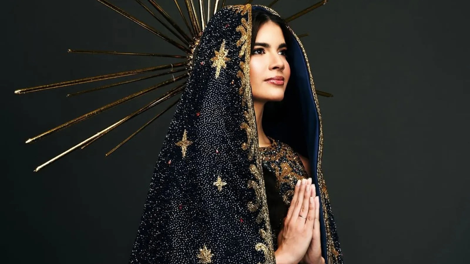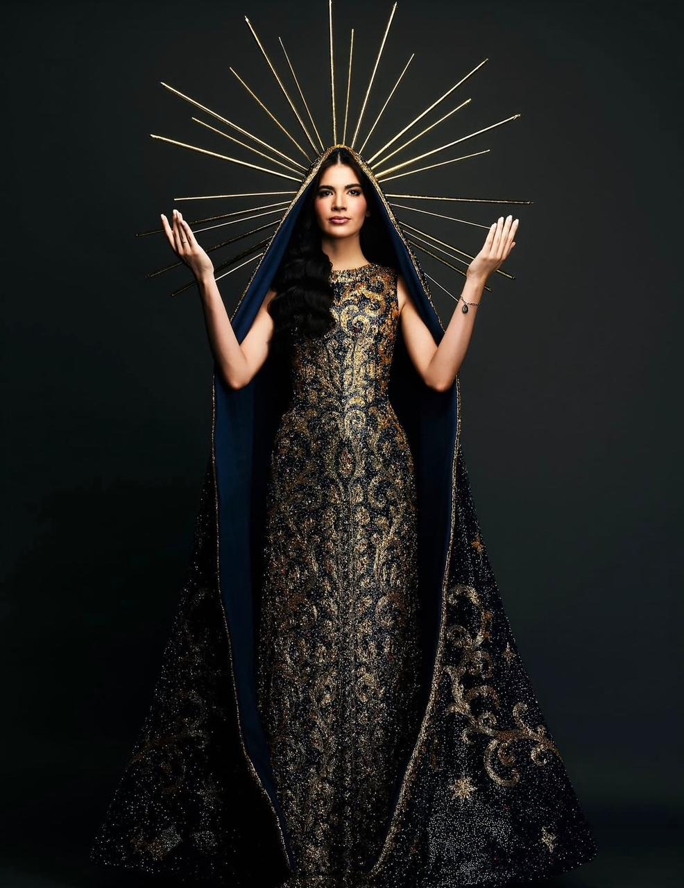 Brasileira no Miss Universo usando traje inspirado em Nossa Senhora Aparecida.