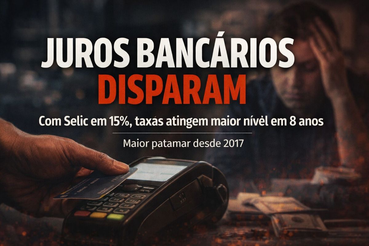 Com a taxa básica de juros em patamar elevado, os juros bancários disparam com a Selic alta. Os juros bancários voltaram a subir em novembro e alcançaram o maior nível dos últimos oito anos. Segundo dados divulgados pelo Banco Central, a taxa média cobrada pelos bancos em operações com pessoas físicas e empresas chegou a 46,7% ao ano, avanço de 0,6 ponto percentual em relação a outubro.