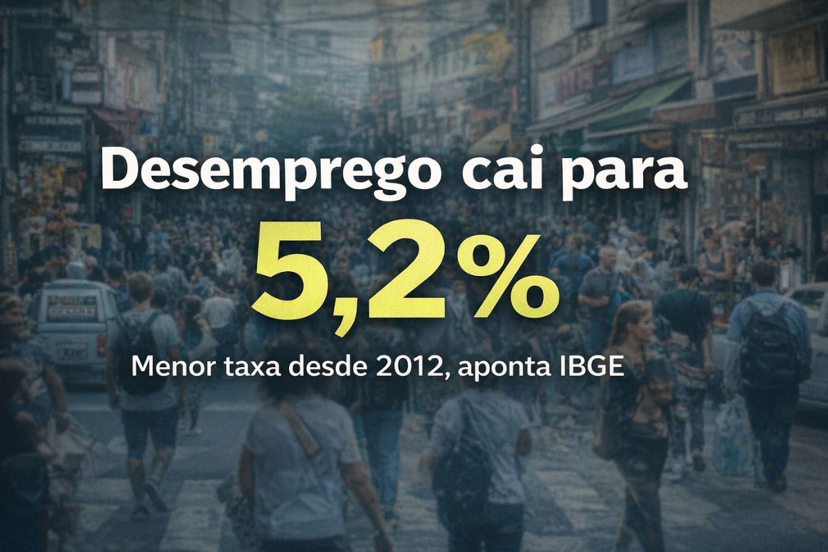 A taxa de desemprego no Brasil caiu para 5,2% no trimestre encerrado em novembro. Os dados foram divulgados pelo Instituto Brasileiro de Geografia e Estatística (IBGE). O índice é o menor desde 2012, segundo a Pesquisa Nacional por Amostra de Domicílios Contínua (PNAD Contínua).